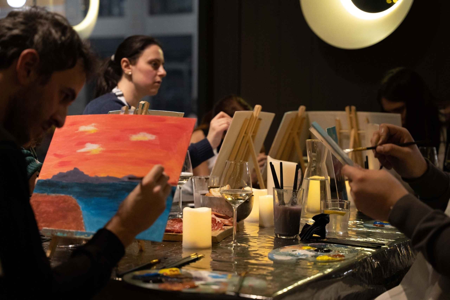 Release you inner Da Vinci with this wine & paint class! Have fun exploring your creative side. Embark on a captivating journey of self-expression and creativity as you join our exquisite Paint 'n Sip class! Prepare to revel in the joy of discovering your artistic side while sipping exquisite wines and enjoying an enchanting evening in Milan. The adventure starts getting to know each other over a glass of wine and delightful snacks. Immerse yourself in the artistry as we delve into the fundamentals of painting, ensuring that even beginners feel right at home. Once the introductory session concludes, the true essence of the class takes center stage. Over the course of two hours, be transported to a realm of tranquility and inspiration, all while indulging in a diverse selection of wines. From reds to whites, savor all the different varieties and find your favorite one! Our open wine formula ensures that your glass will never empty. The culmination of this unforgettable evening will be the masterpiece you create. Carry your personal artwork back home, serving as a tangible memento of the memories forged during this extraordinary experience. Our paint 'n sip activity is designed to be inclusive and welcoming to all participants aged 18 and above, regardless of prior artistic experience. No pressure is placed on achieving perfection; instead, the emphasis is on embracing the fun and joy of art. We provide a complete set of paintbrushes, paint, high-quality canvases, comfortable aprons, and an abundant supply of wine and snacks. Join us in Milan for an evening of artistic expression, delightful wines, and lasting memories. Book your place today and unlock the artist within!Includes