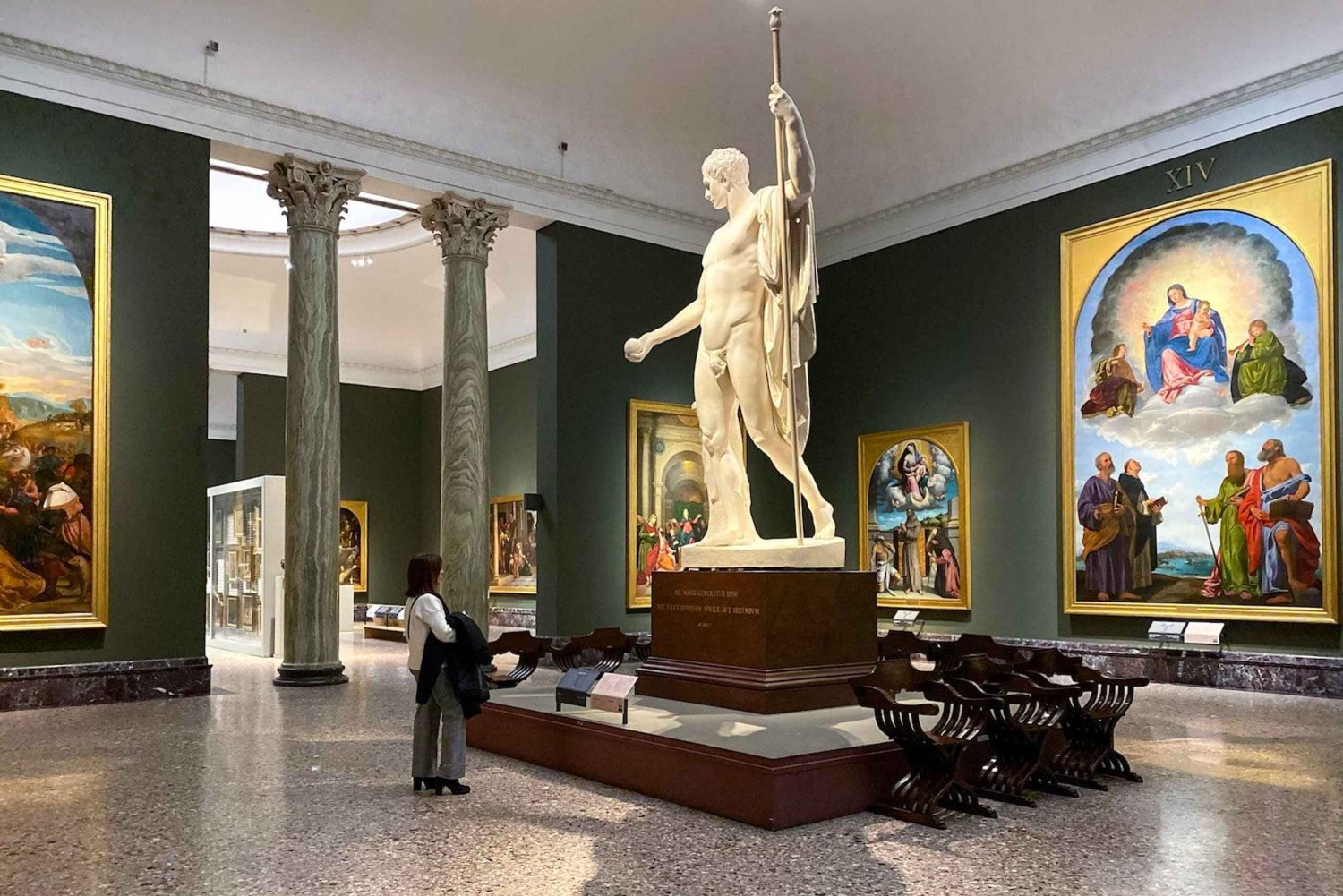 - Kierros alkaa Brera-akatemian sisäpihalta. Käytä mukavia kenkiä, sillä retkellä on kohtalaisen paljon kävelyä. Salamavalokuvaus ei ole sallittua galleriassa