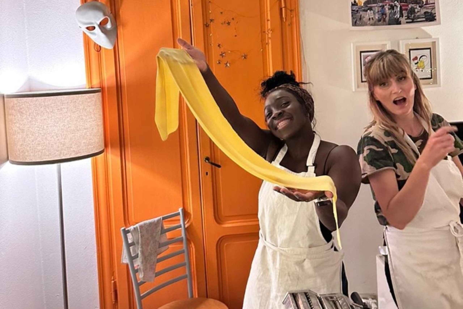 Découvrez l'art de la cuisine italienne lors d'un atelier en petit groupe dans un appartement milanais typique. Votre hôte vous apprendra à préparer des pâtes maison - les tagliatelles -, un délicieux ragù et le tiramisu, le dessert le plus célèbre d'Italie. Mais ce n'est pas tout : vous serez accueillis avec un apéritif composé de produits typiquement italiens, et du vin sera servi tout au long de l'atelier. À la fin de l'atelier, vous vous assiérez avec les autres membres du groupe - qui seront devenus vos amis - et vous dégusterez le fruit de votre travail. Croyez-moi : ce sera le meilleur plat de tagliatelles de votre voyage en Italie ! Le groupe est limité à 6 personnes pour permettre à l'hôte de guider chacun avec soin et de créer une atmosphère intime et agréable pour tous. Le cours de cuisine commence ! Le chef vous guidera à chaque étape et vous donnera des conseils et des astuces pour préparer d'excellentes pâtes maison. Et devinez quoi ? Vous découvrirez que ce n'est pas difficile et qu'avec les recettes que le chef vous donnera, vous pourrez recréer les plats chez vous. Ce cours de cuisine est plus qu'une simple leçon : c'est une expérience immersive qui vous permet d'entrer véritablement en contact avec la culture italienne. Mais le meilleur moment est à la fin du cours, lorsque vous apprécierez le résultat de votre travail et dégusterez les plats que vous avez préparés avec vos nouveaux amis. Le tout est accompagné d'un excellent vin italien dans une atmosphère agréable et détendue. Si vous avez des exigences particulières, faites-le nous savoir et nous vous contacterons. Pour les voyagistes ou les agences uniquement : veuillez nous communiquer le numéro de téléphone du client final lors de la confirmation de la réservation afin que nous puissions le contacter en cas de besoin.Includes