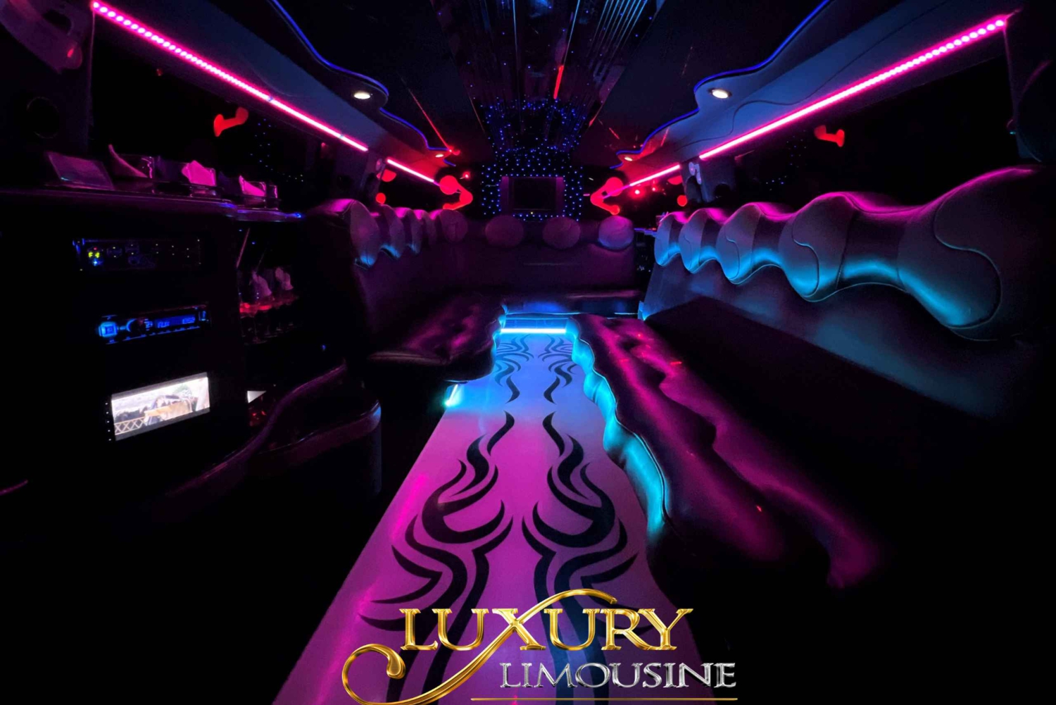 Tour di 1 ora per la città con soste foto Musica riproducibile da infotaiment Gestione illuminazione interna Drink o spumante flut e bicchieriEasy cancellation
