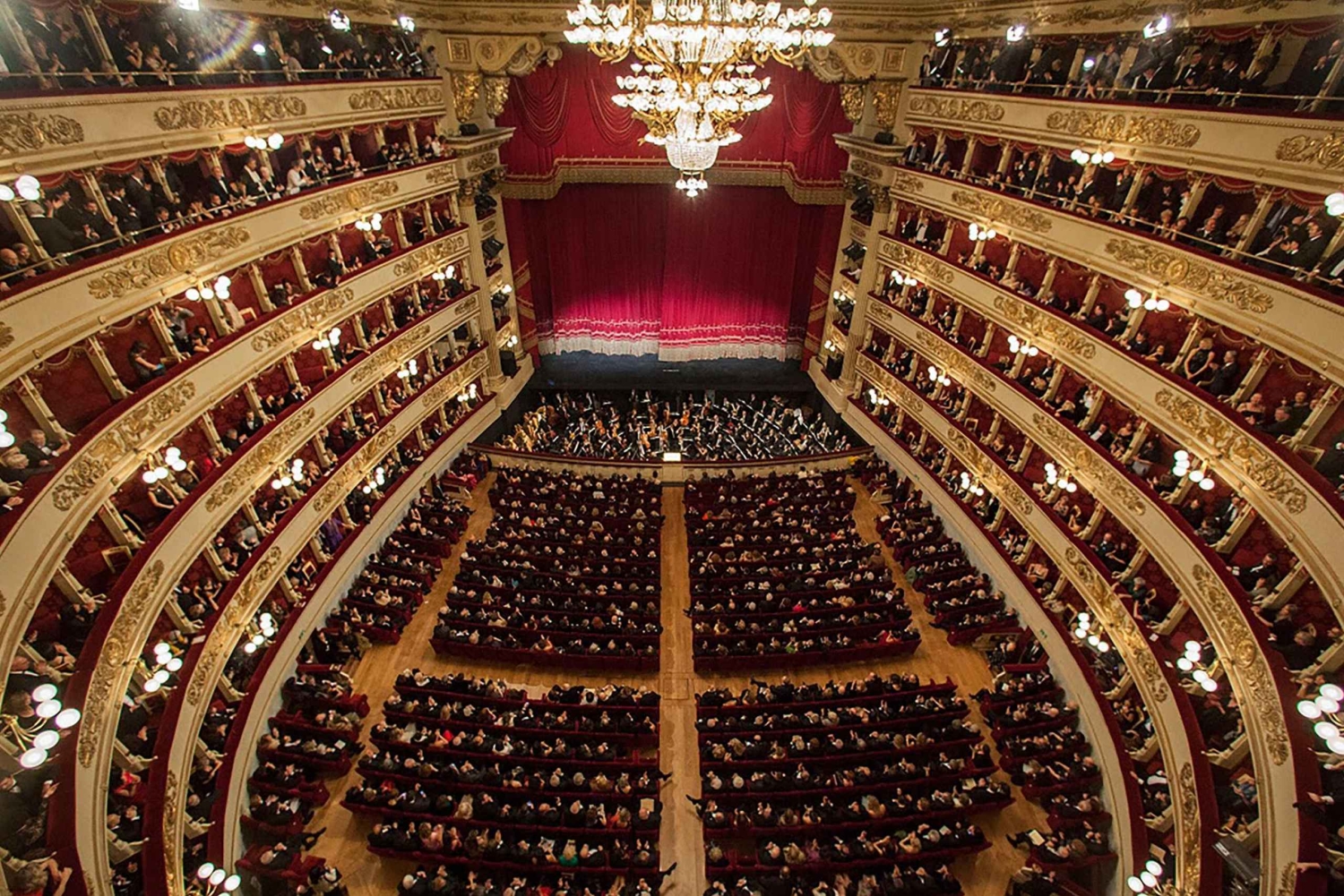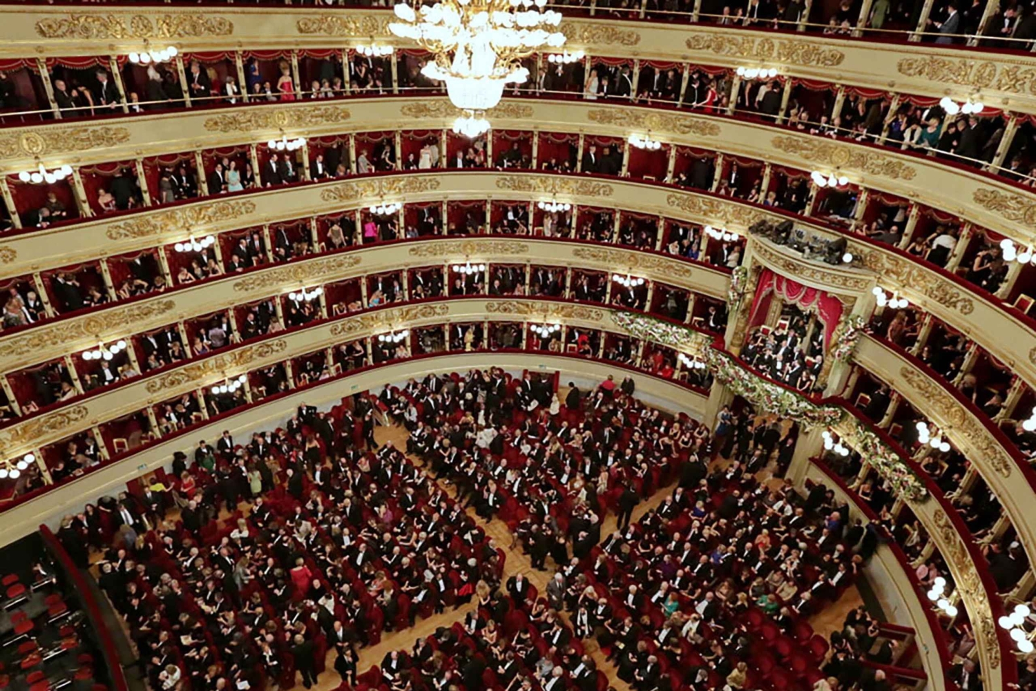 - 豪華に装飾されたスカラ座の講堂を鑑賞しましょう。