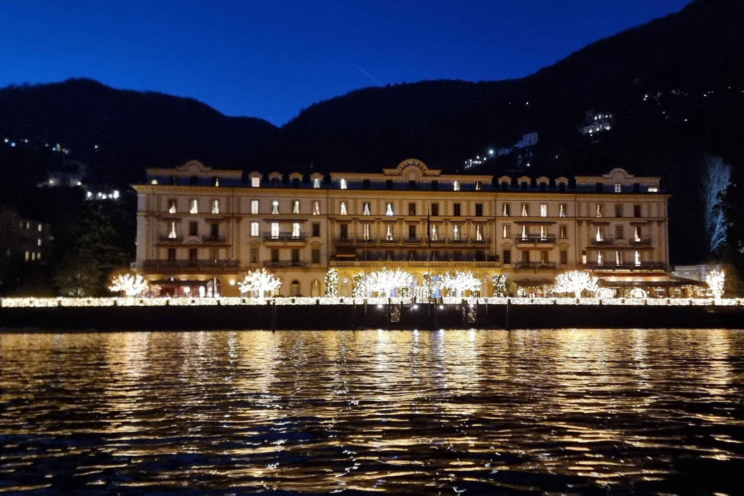 Ontdek het Comomeer als nooit tevoren met een exclusieve aperitivo-cruise bij zonsondergang. Bewonder de historische villa's van het eerste bekken in een magisch licht en proost met een glas Prosecco bij twee exclusieve stops. Vertrek op een panoramische cruise in het eerste bekken van het Comomeer en bewonder iconische villa's zoals Villa d'Este, Villa Versace, Mandarino Oriental en vele andere. Maak twee exclusieve stops om te proosten met een glas Prosecco en neem adembenemende foto's met op de achtergrond de historische huizen verlicht door het gouden licht van de zonsondergang. Geniet van een ontspannen en elegante sfeer, perfect voor wie het Comomeer op een authentieke en suggestieve manier wil ervaren.Includes