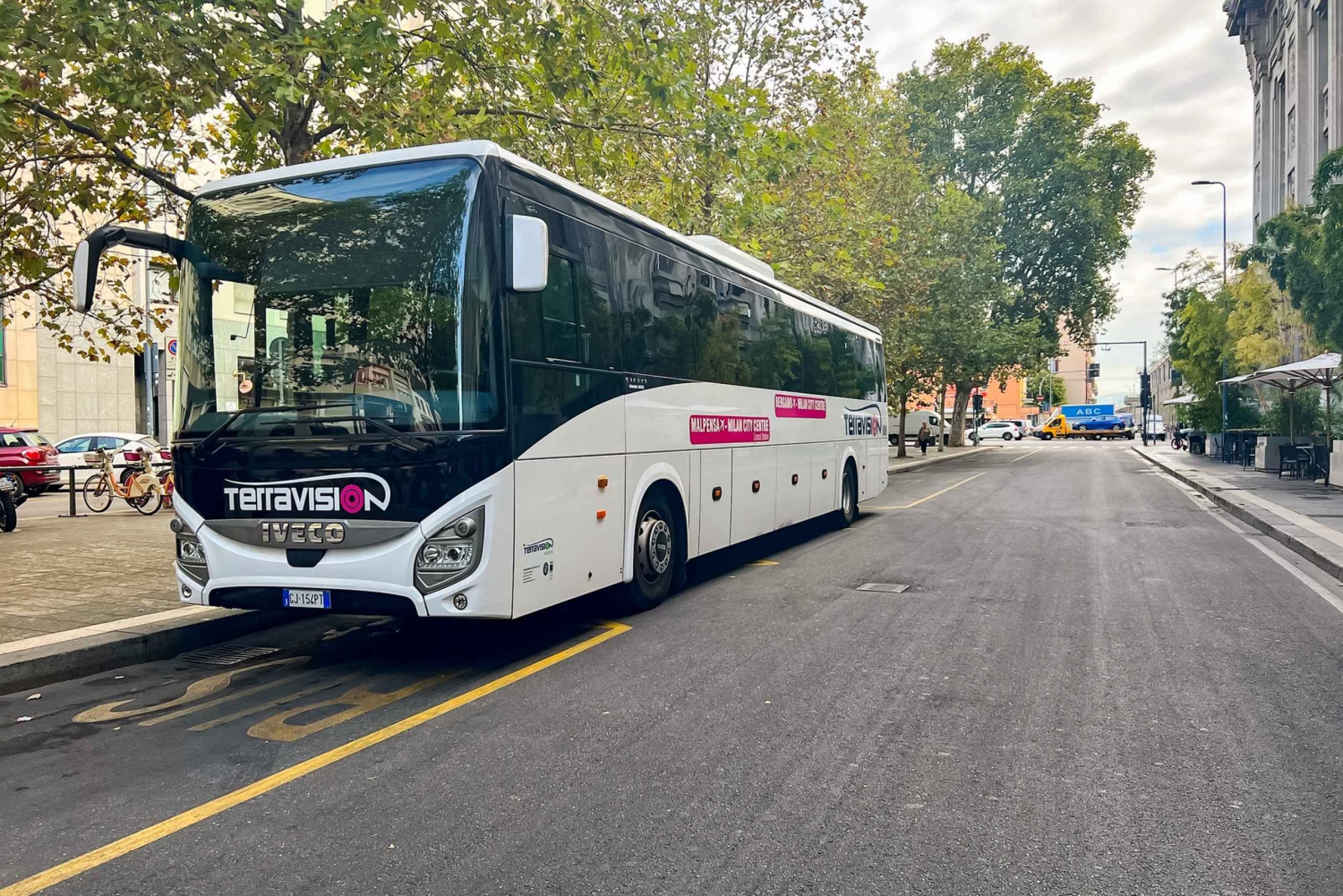 • De eerste bus vertrekt om 00:10 uur vanaf het vliegveld en de laatste om 23:40 uur De eerste bus vertrekt om 03:00 uur vanaf het Centraal Station van Milaan en de laatste om 23:40 uur Je hoeft je ticket niet af te drukken; laat gewoon je e-ticket (met QR-code) zien aan ons personeel bij de halte. Het wordt aanbevolen om een bus te kiezen die ten minste 2 uur vóór je geplande vertrektijd van de vlucht op de luchthaven aankomt om tijd voor het inchecken mogelijk te maken.