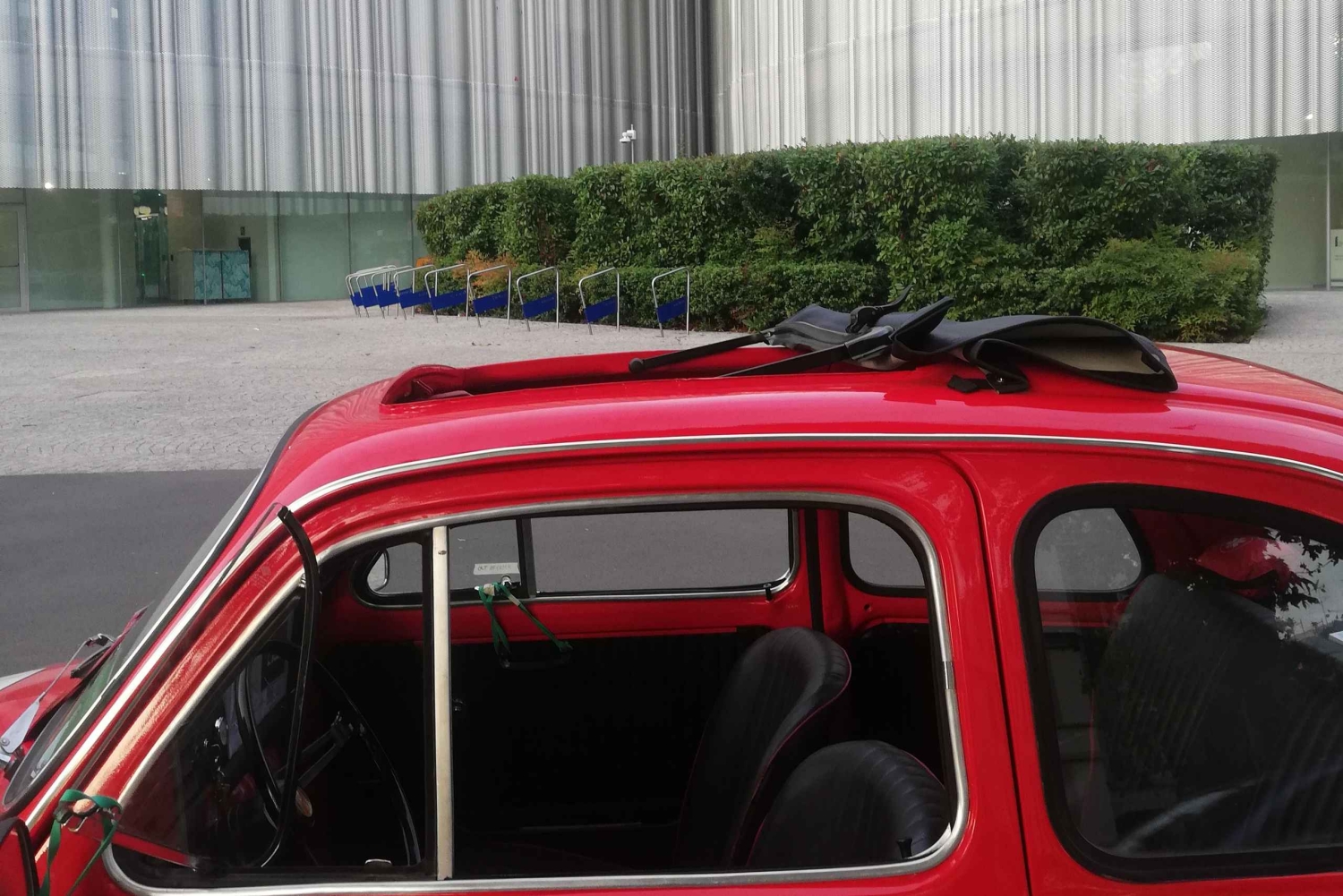 Utforsk Milano i en klassisk Fiat 500, og se noen av byens høydepunkter på denne 2-timers turen. Se hvorfor Milano en gang var som 'lille Venezia'! Møt sjåføren din og hopp inn i en klassisk rød Fiat 500 i hjertet av byen, eller benytt deg av muligheten til å møte sjåføren på hotellet ditt (kun utvalgte hoteller). Lær om byens kanaler, havner og sluser mens du ser noen av byens severdigheter, blant annet Darsena (havnen) og Naviglio Grande (kanalen). Beundre også den kongelige villaen Belgiojoso, Sforza-slottet, Montanelli-hagene, luksusmotedistriktet, Rasini-tårnet, Portaluppi-buen... Ta noen bilder under det korte stoppet i Navigli-distriktet, reiselederen venter på deg ved bilen. Reiseruten kan bli endret på grunn av trafikk eller kommunens anvisninger.Includes