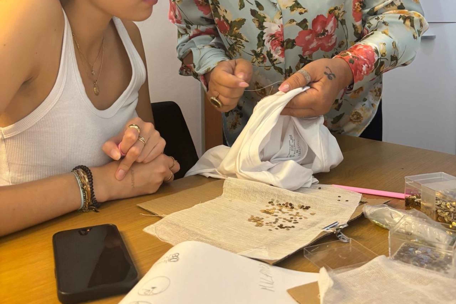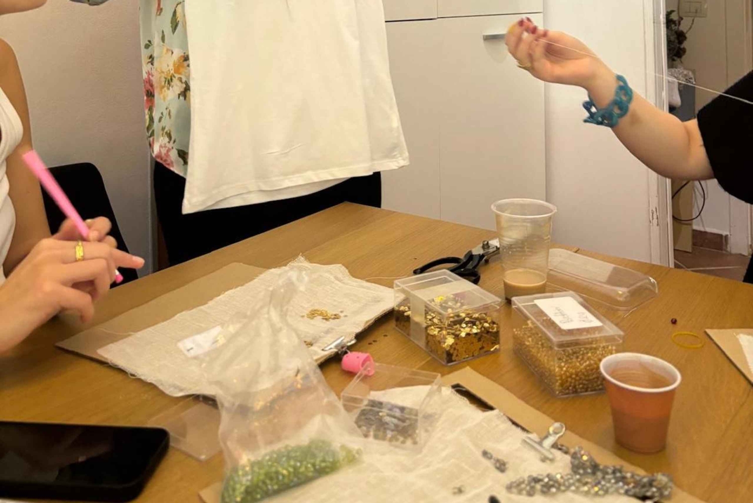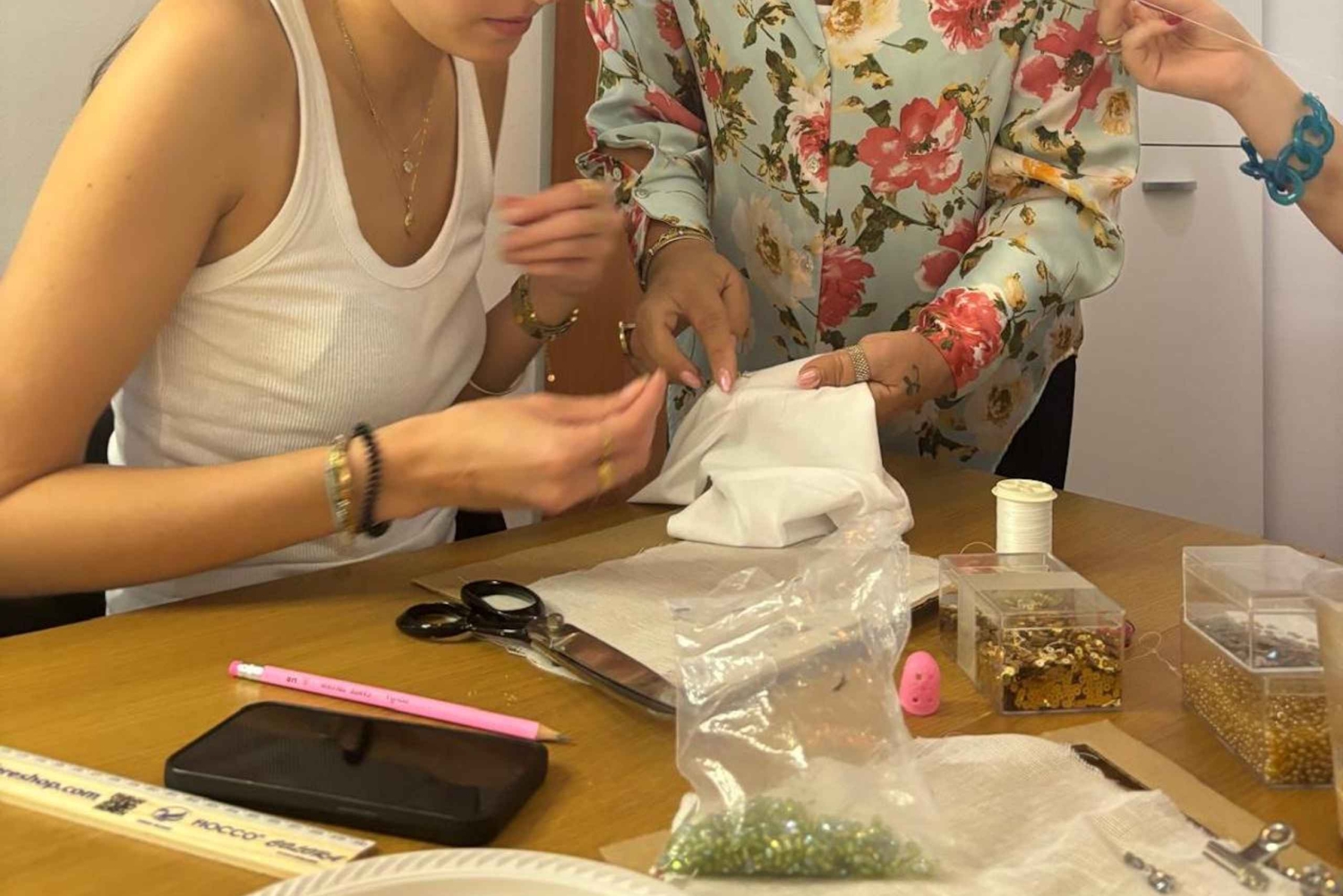 Pod okiem eksperta Steli będziesz miał okazję przyjrzeć się mistrzostwu haftu rzemieślniczego. Od tworzenia pięknych akcesoriów, takich jak kolczyki, bransoletki, naszyjniki i torebki, po dostosowywanie dowolnej odzieży lub akcesoriów, Twoja podróż do świata haftu będzie pełna inspiracji i kreatywności. Staniesz się twórcą! Będziesz mieć okazję przetestować swoje umiejętności haftu, personalizując koszulkę lub torbę (dostarczoną przez Stela) swoim imieniem lub specjalnym symbolem, takim jak serce lub gwiazda, tworząc w ten sposób wyjątkową i niezapomnianą pamiątkę z tego doświadczenia. Ale nie tylko to... oprócz samego doświadczenia, będziesz mieć dostęp do ogromnej szafy unikalnych elementów wybranych bezpośrednio przez Stelę do jej sklepu, będziesz mógł wybrać te, które najbardziej Ci się podobają i które pobudzają Twoją wyobraźnię! Będziesz mieć możliwość zakupu unikalnych elementów, a jeśli chcesz, aby Twój element był jeszcze bardziej wyjątkowy, będziesz mieć możliwość spersonalizowania go za pomocą genialnych koralików i innych fascynujących detali. Czy jesteś gotowy, aby odkryć swój ukryty talent w hafcie? Zarezerwuj już teraz i przygotuj się na niezapomniane wrażenia!Includes