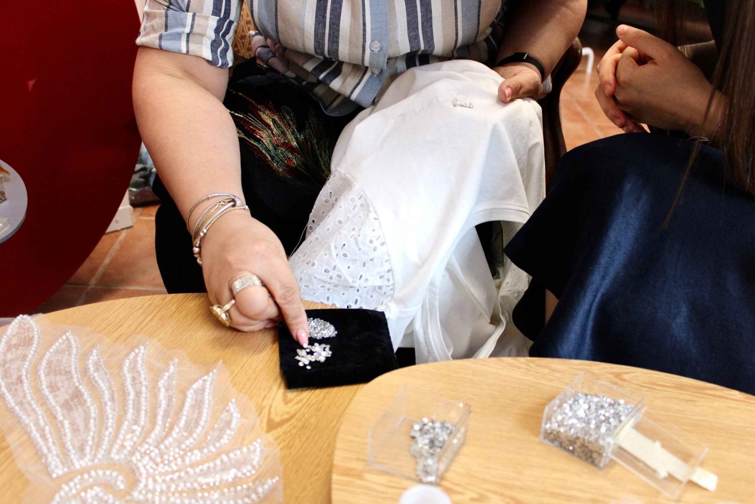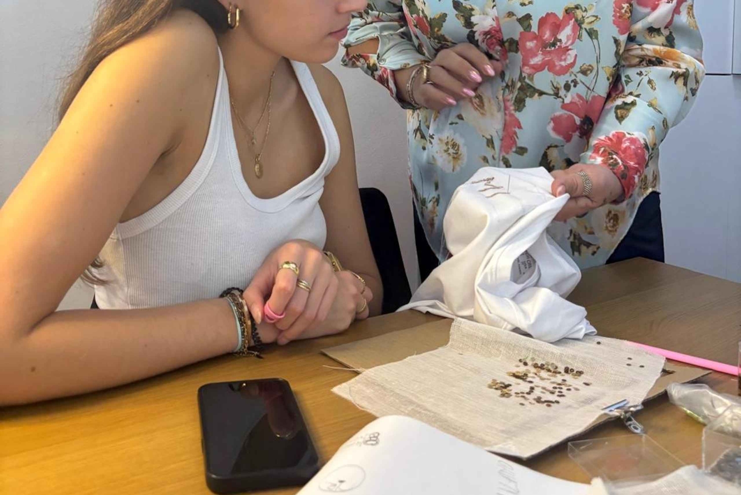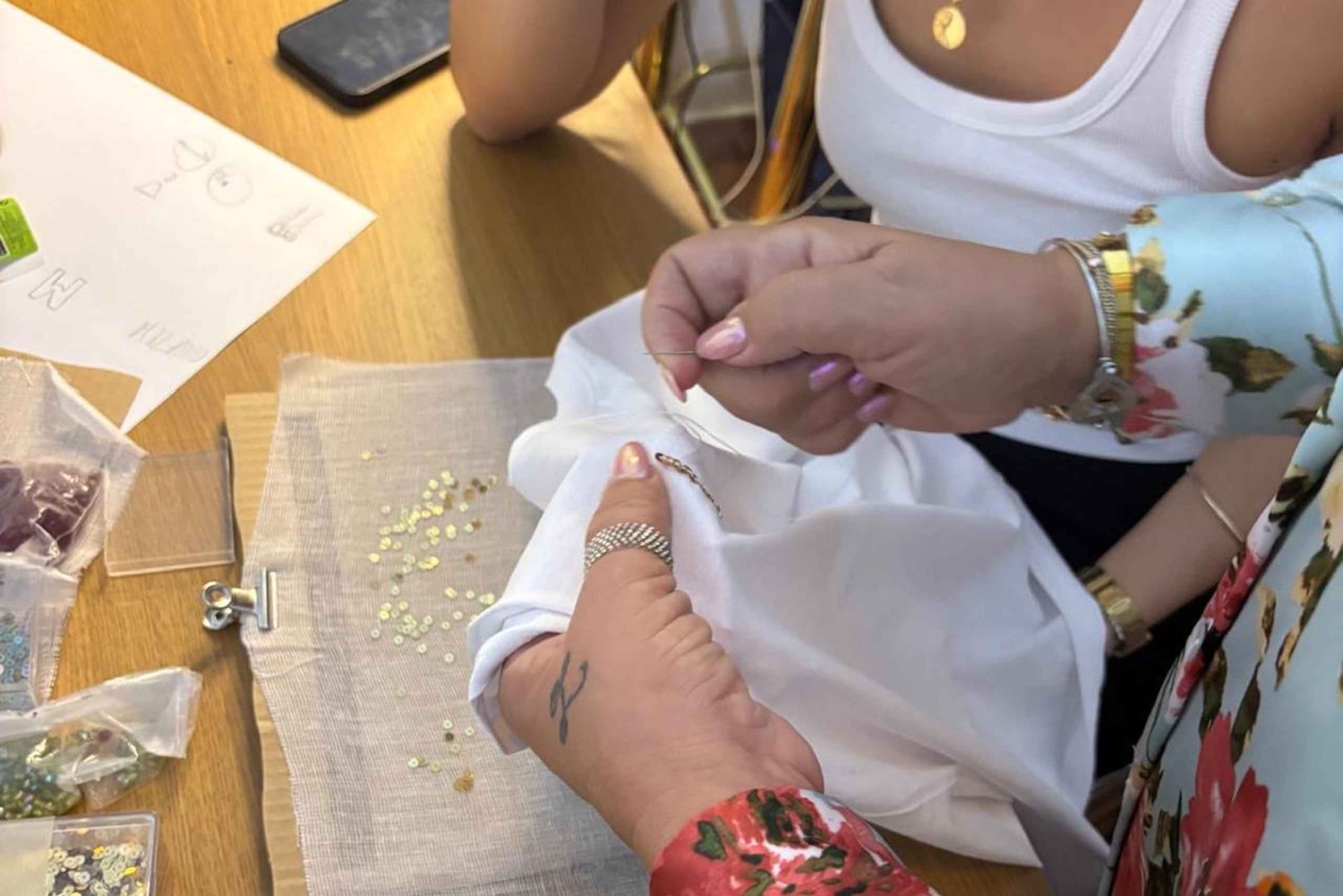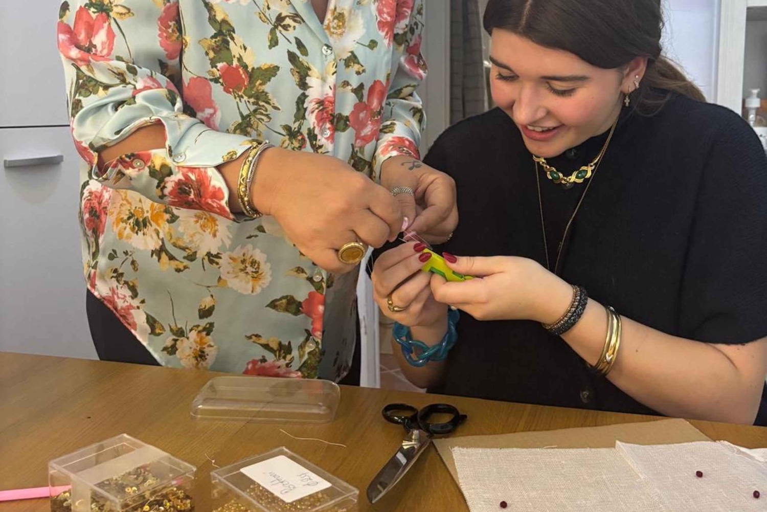 Pod okiem eksperta Steli będziesz miał okazję przyjrzeć się mistrzostwu haftu rzemieślniczego. Od tworzenia pięknych akcesoriów, takich jak kolczyki, bransoletki, naszyjniki i torebki, po dostosowywanie dowolnej odzieży lub akcesoriów, Twoja podróż do świata haftu będzie pełna inspiracji i kreatywności. Staniesz się twórcą! Będziesz mieć okazję przetestować swoje umiejętności haftu, personalizując koszulkę lub torbę (dostarczoną przez Stela) swoim imieniem lub specjalnym symbolem, takim jak serce lub gwiazda, tworząc w ten sposób wyjątkową i niezapomnianą pamiątkę z tego doświadczenia. Ale nie tylko to... oprócz samego doświadczenia, będziesz mieć dostęp do ogromnej szafy unikalnych elementów wybranych bezpośrednio przez Stelę do jej sklepu, będziesz mógł wybrać te, które najbardziej Ci się podobają i które pobudzają Twoją wyobraźnię! Będziesz mieć możliwość zakupu unikalnych elementów, a jeśli chcesz, aby Twój element był jeszcze bardziej wyjątkowy, będziesz mieć możliwość spersonalizowania go za pomocą genialnych koralików i innych fascynujących detali. Czy jesteś gotowy, aby odkryć swój ukryty talent w hafcie? Zarezerwuj już teraz i przygotuj się na niezapomniane wrażenia!Includes