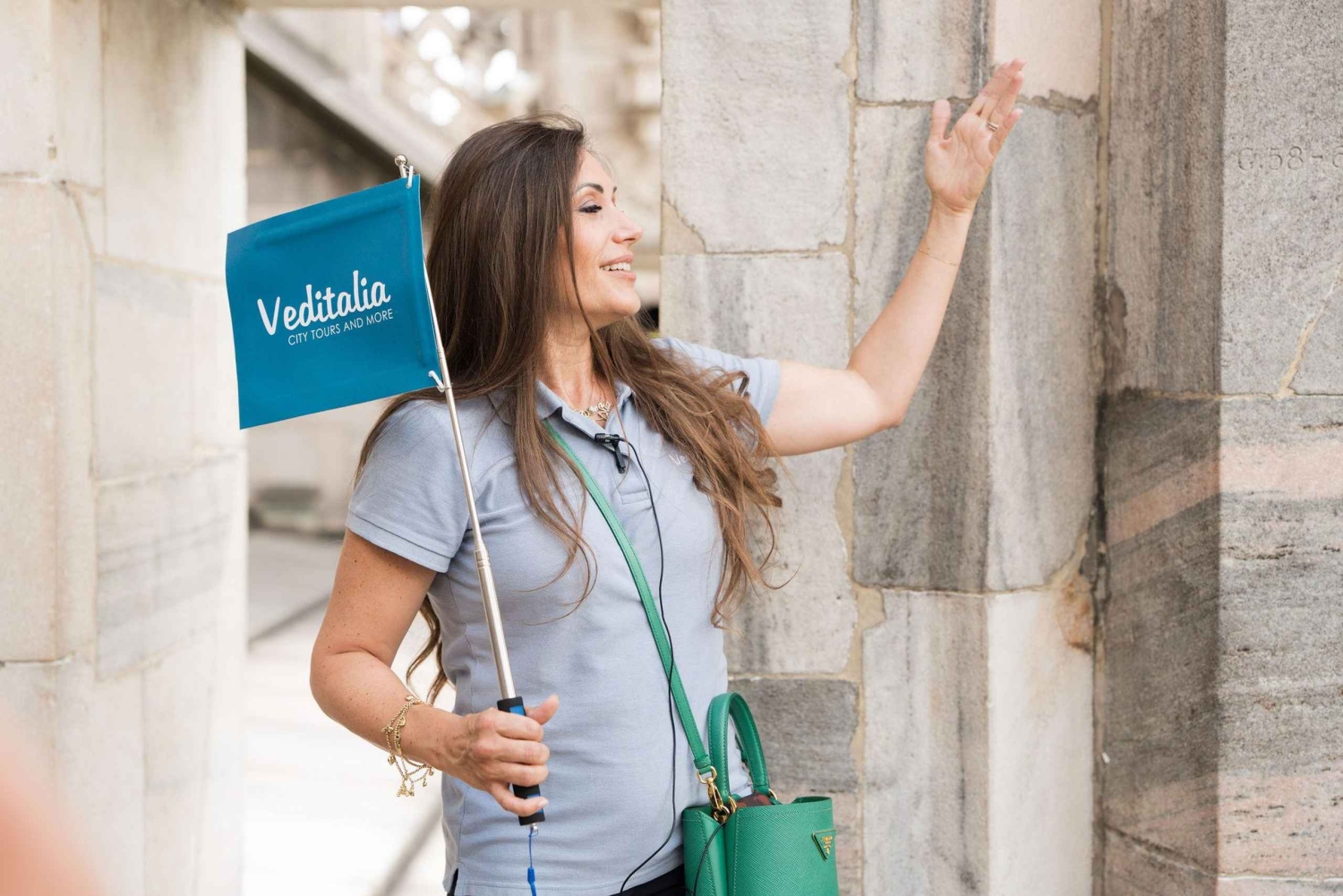 Engelsktalande guide vid Duomos terrasser Biljett med köföreträde till Duomos terrasser Hiss till första terrassen Hörlurar 2-dagars öppen bussbiljett (om alternativet valts)Important Information